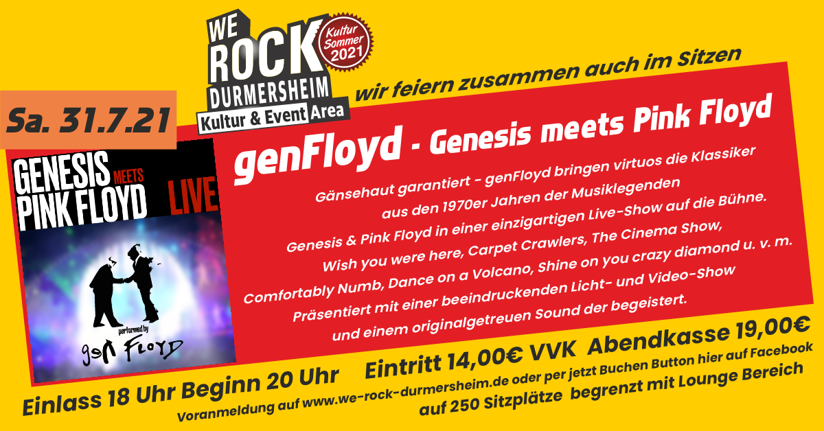 Gänsehaut garantiert – gen Floyd bringen virtuos die Klassiker aus den 1970er Jahren der Musiklegenden Genesis & Pink Floyd in einer einzigartigen Live-Show auf die Bühne.